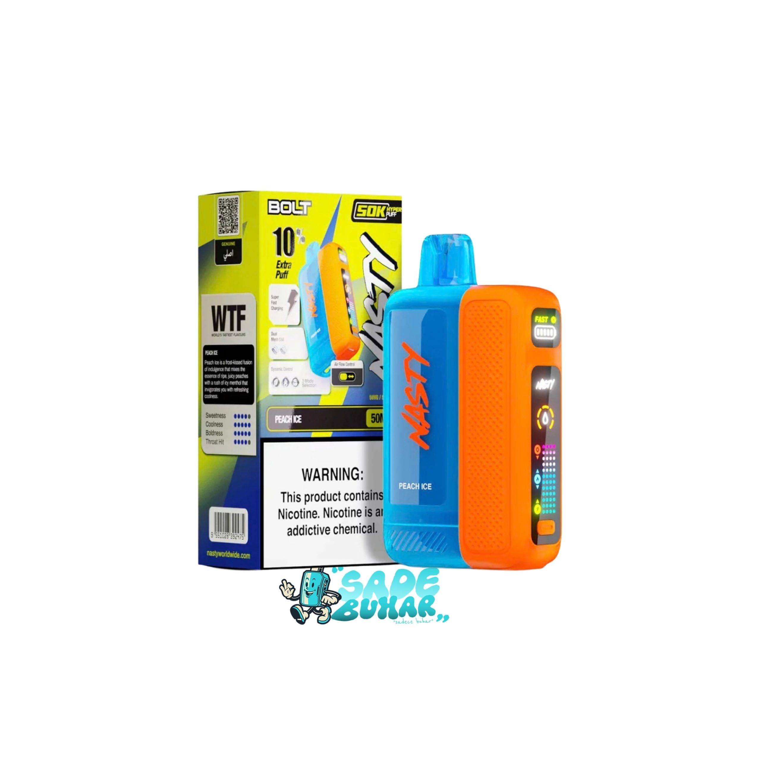 Tüm bu özellikler bir araya geldiğinde Nasty Bolt 50000 Peach Ice, yalnızca bir kullan-at puff bar değil, premium aroma ve performans deneyimi sunan güçlü bir alternatif haline geliyor.